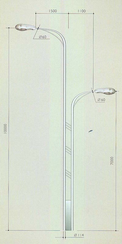 上海普华照明-普照网》飞利浦亚明灯具》亚明路灯灯杆》亚明双叉工艺圆锥杆LDGSS-0020